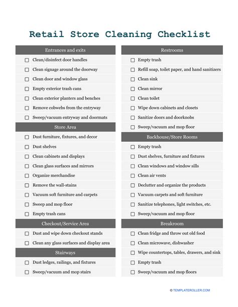 Download retail store cleaning checklist sample Doc Gutenberg